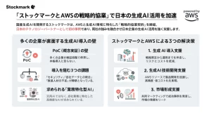 ストックマークとAWSが生成AI実装における戦略的協業契約を締結、日本のテクノロジーパートナーとして初の事例